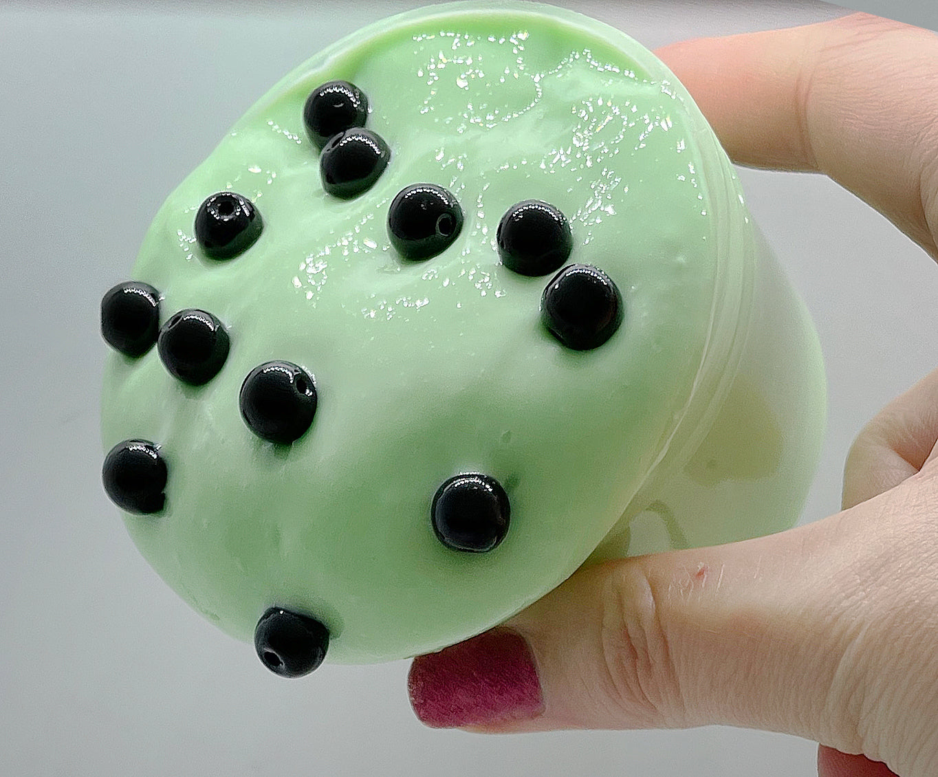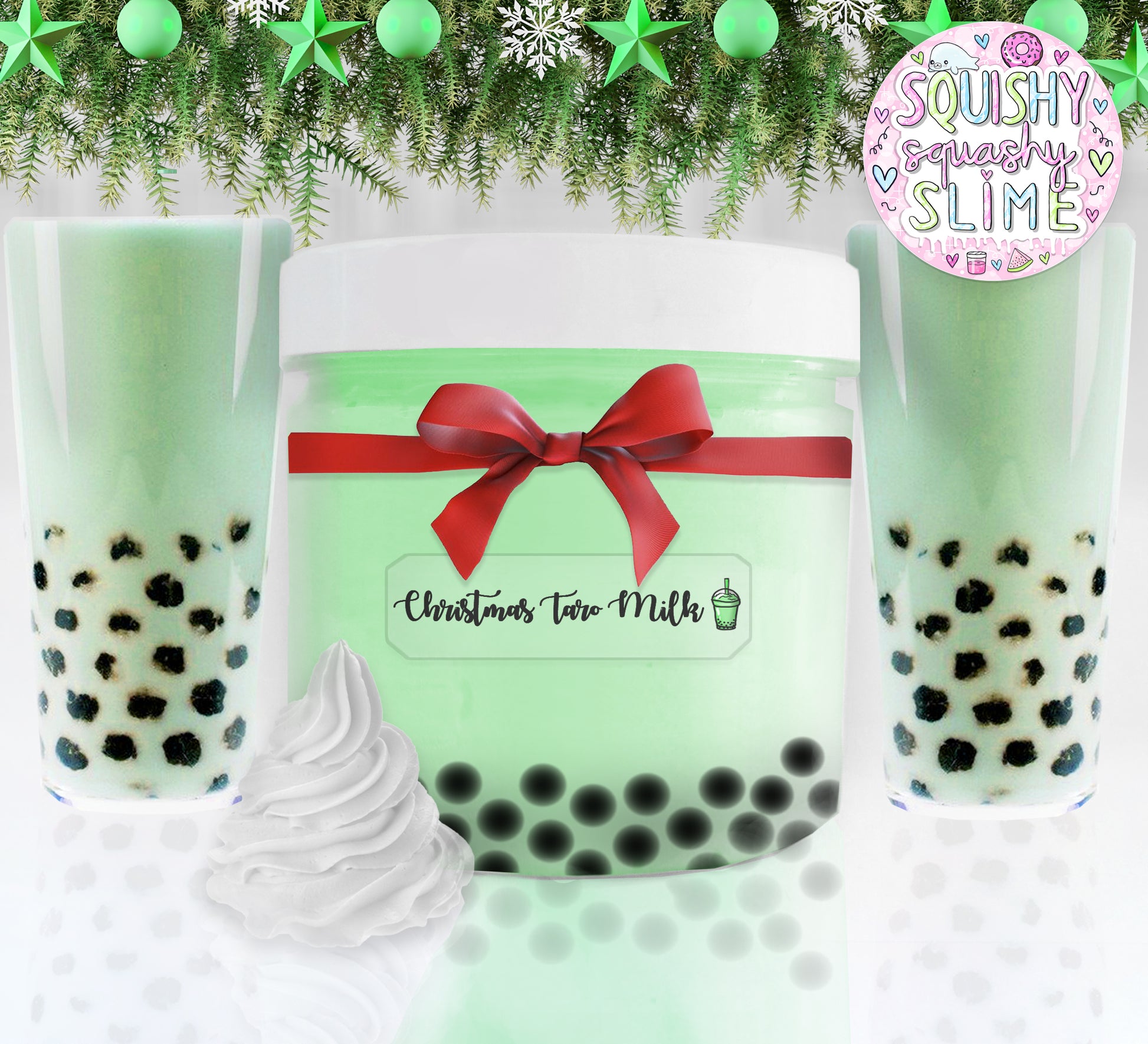 A Christmas spin to our best-selling taro milk slime. A thick, glossy slime that comes with added taro beads. Scented like taro milk.