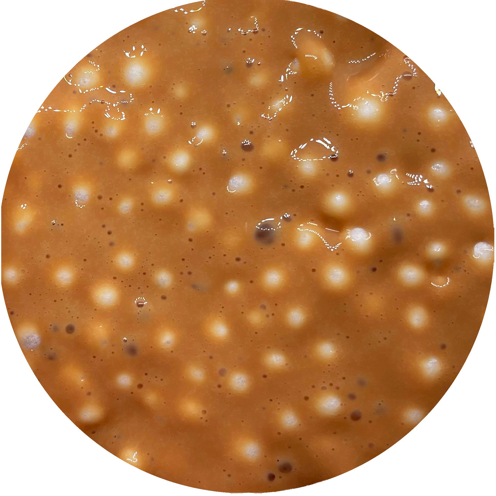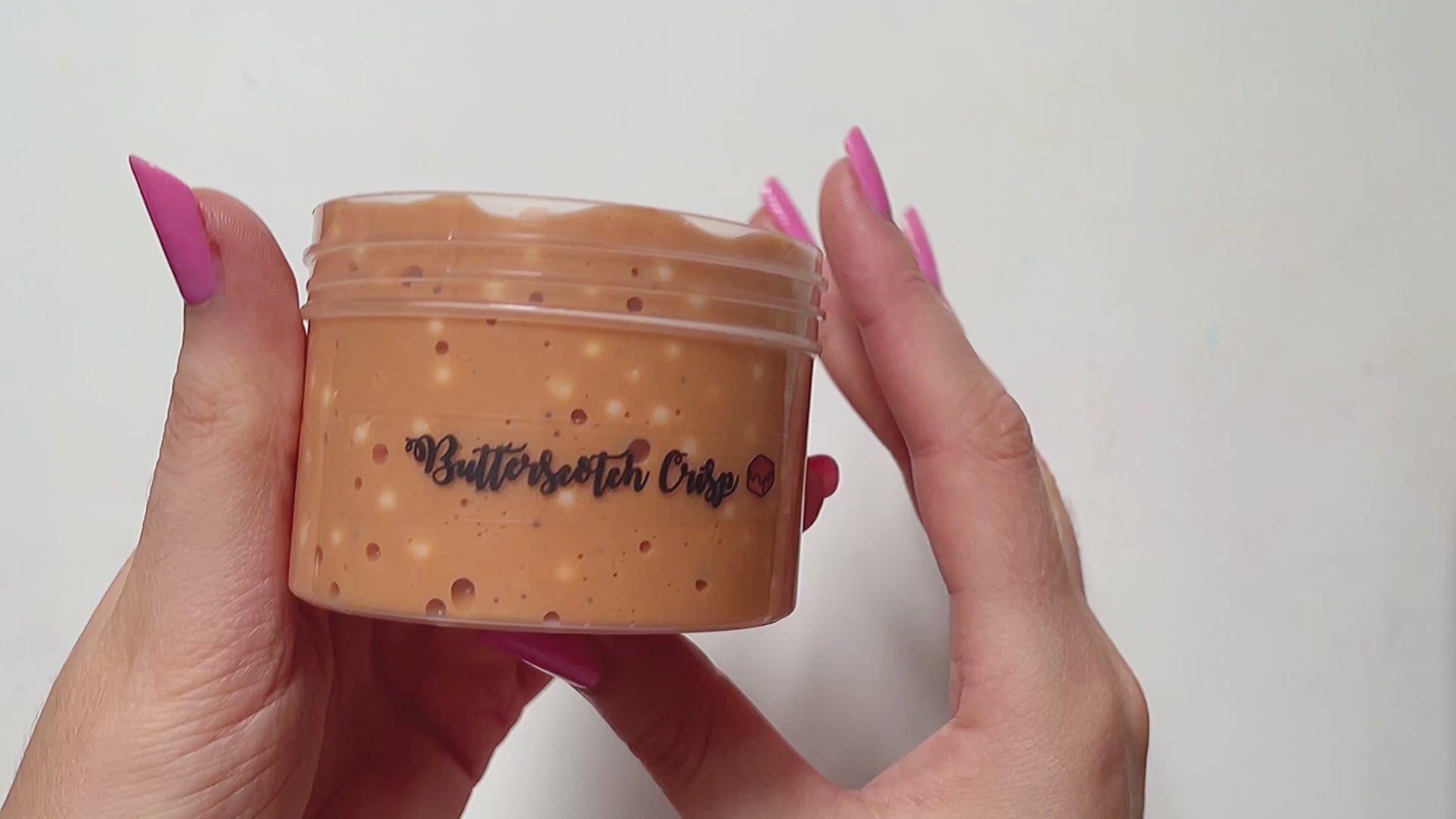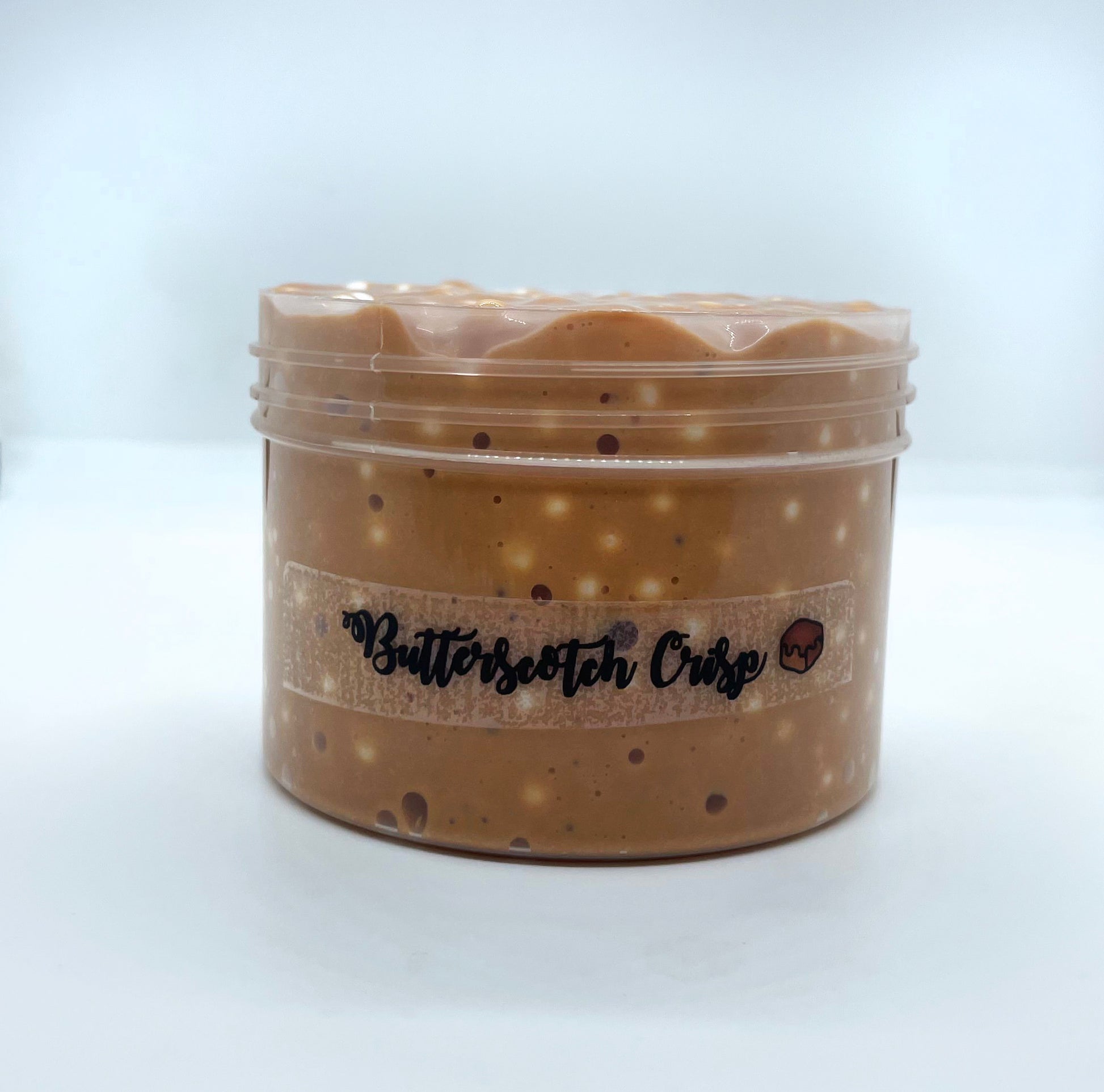 A crunchy floam base with various sized foam beads. Scented like exactly like fresh butterscotch.