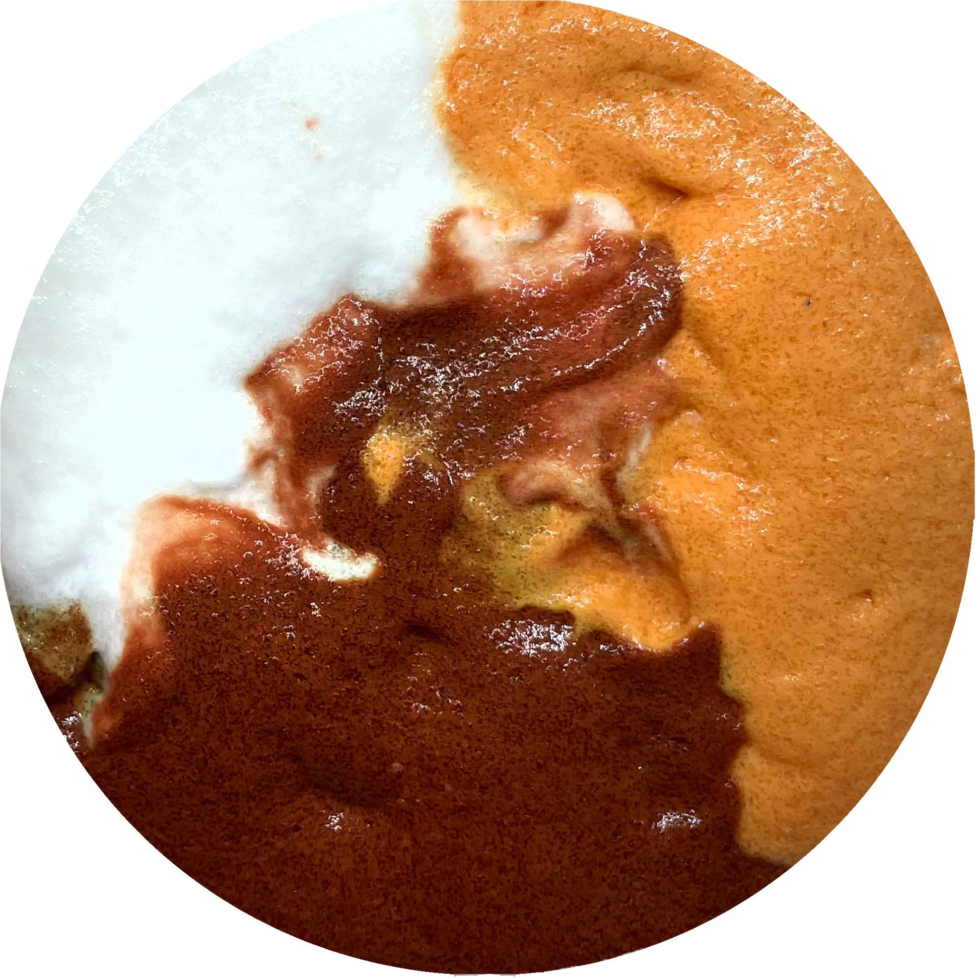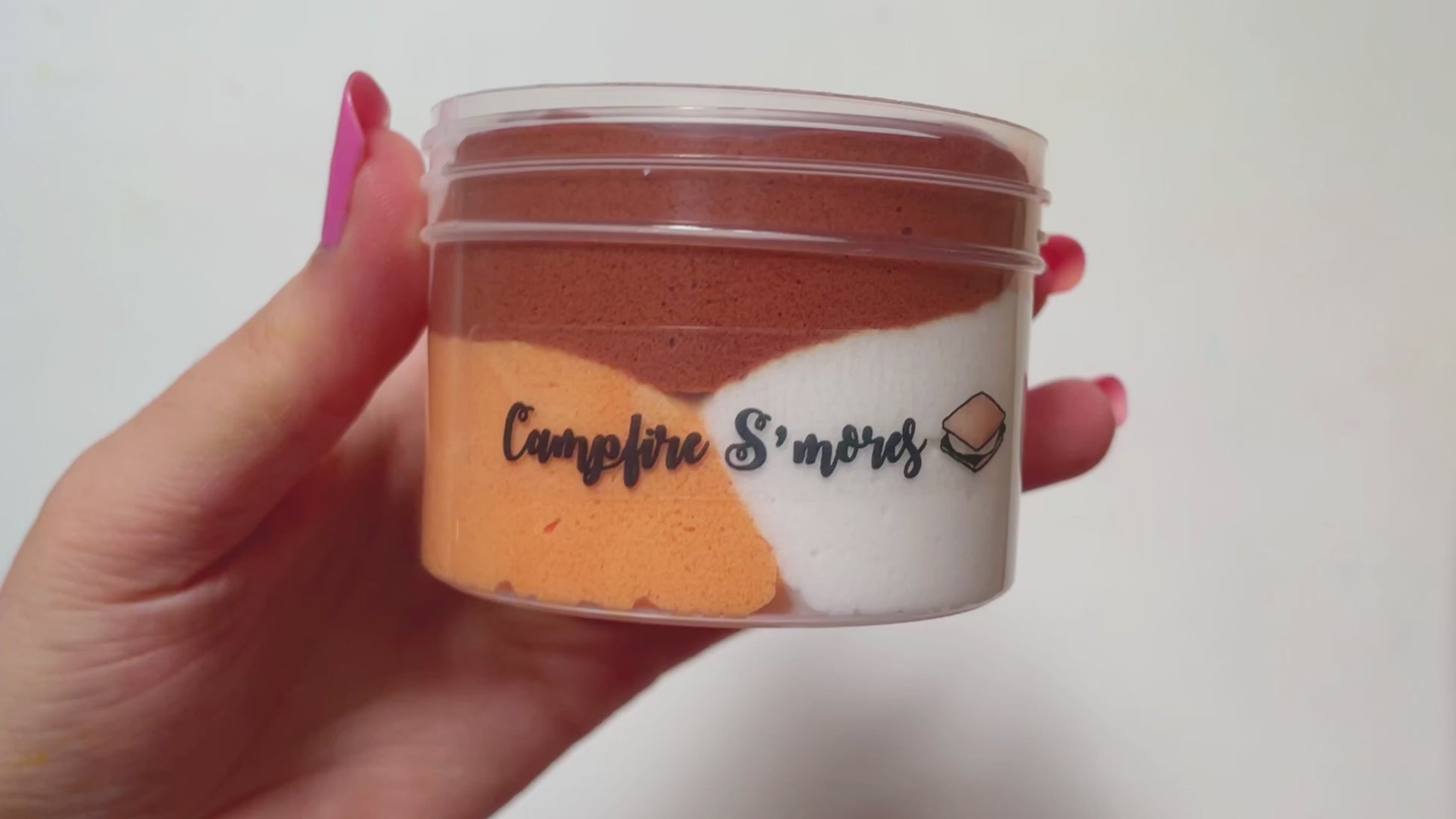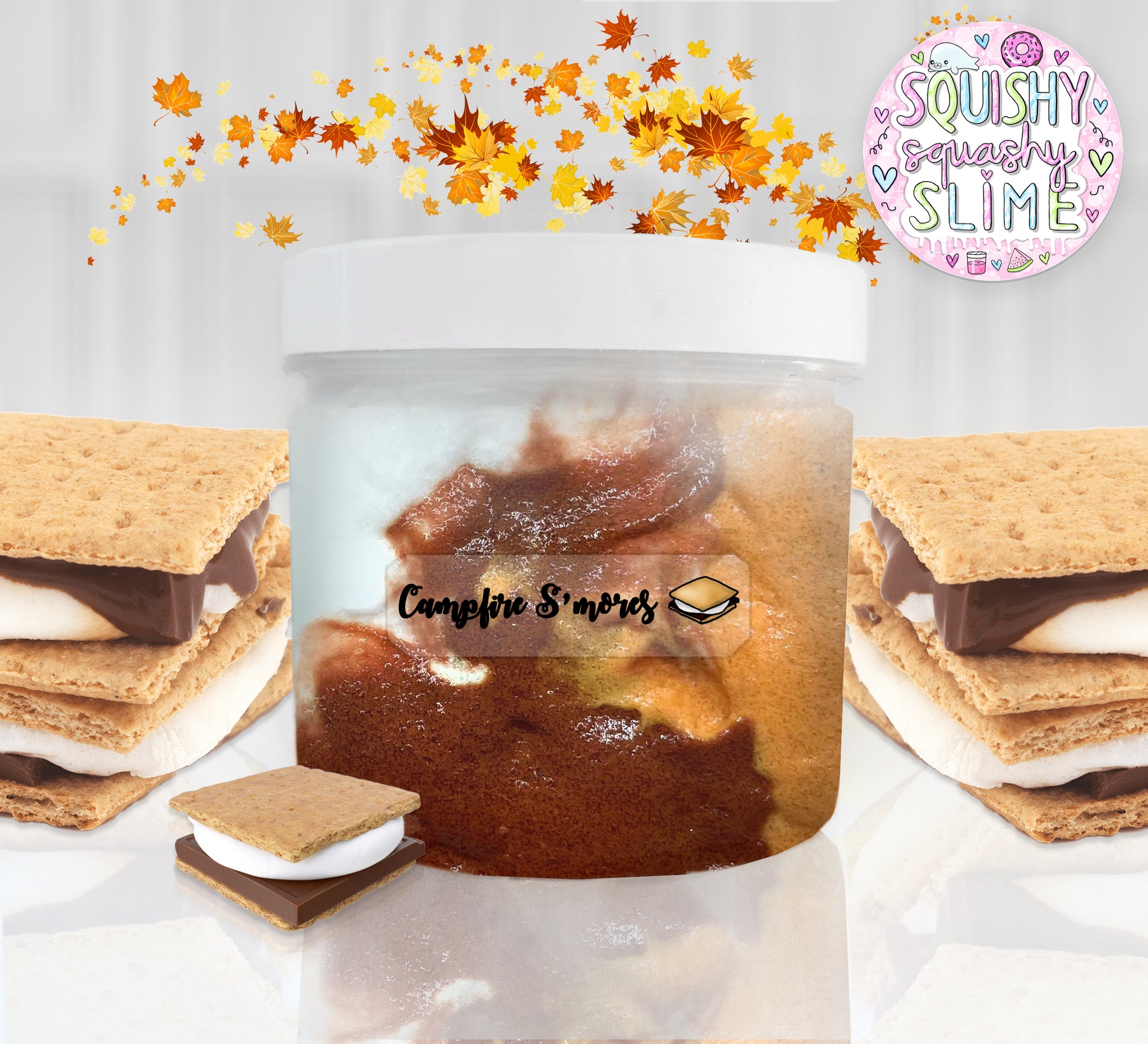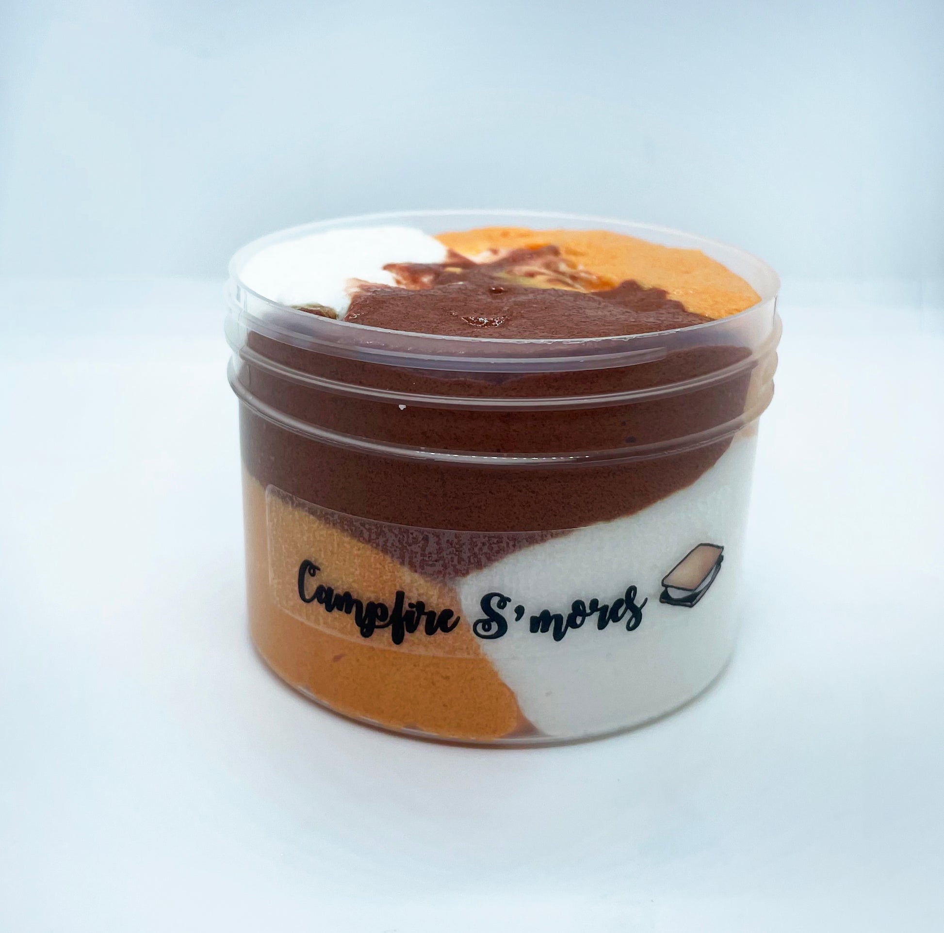 A creamy and inflatable cloud creme that won't mix together in transit due to the thickness of the slime. Once combined, it mixes to a buttery and creamy light brown slime with a delicious scent of campfire s'mores.