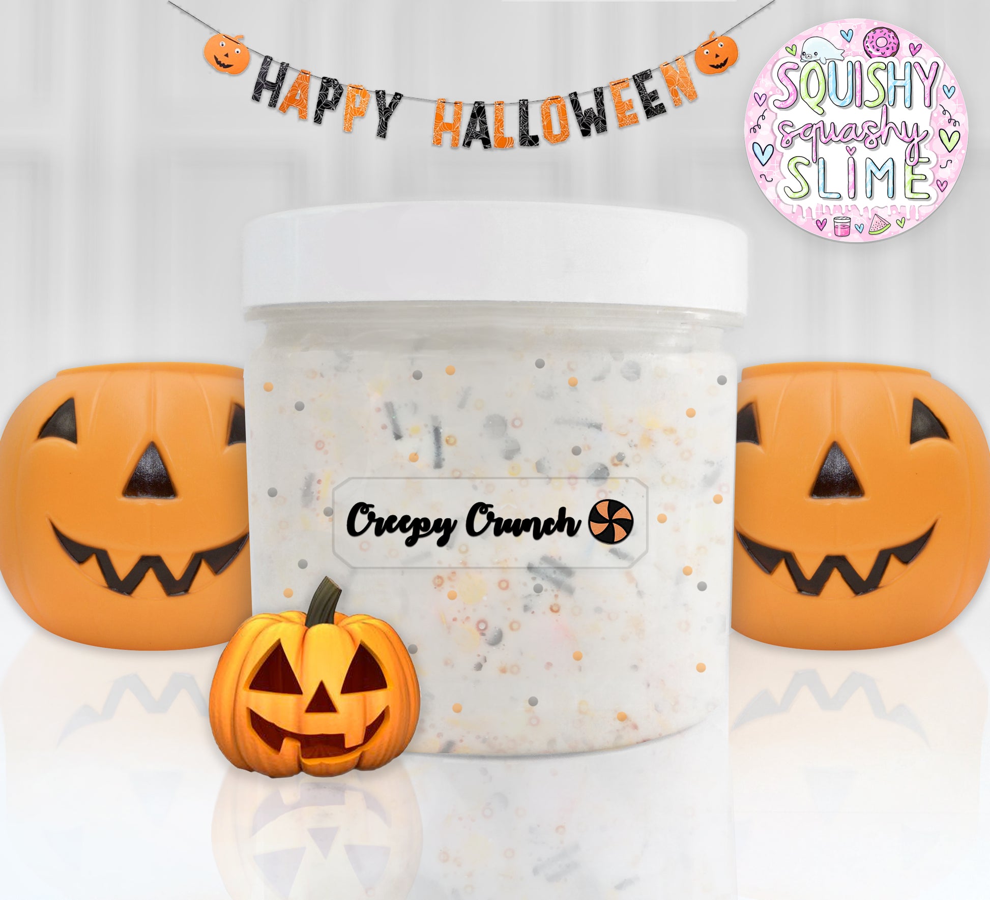A returning Halloween classic. A thick and crunch floam slime with orange, white and black floam balls. It is super crunchy and great for bubble pops. Scented like Halloween candy.