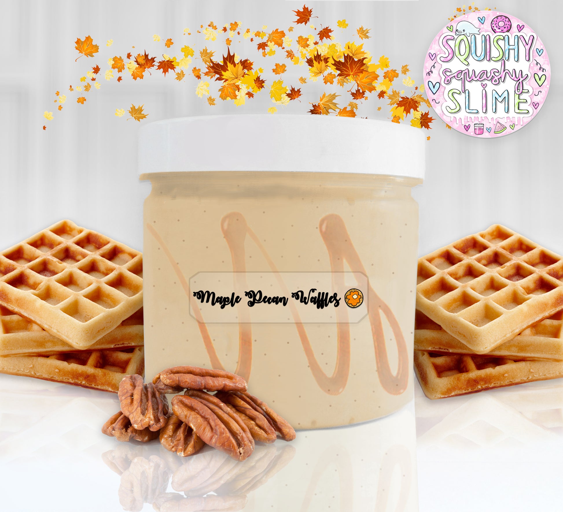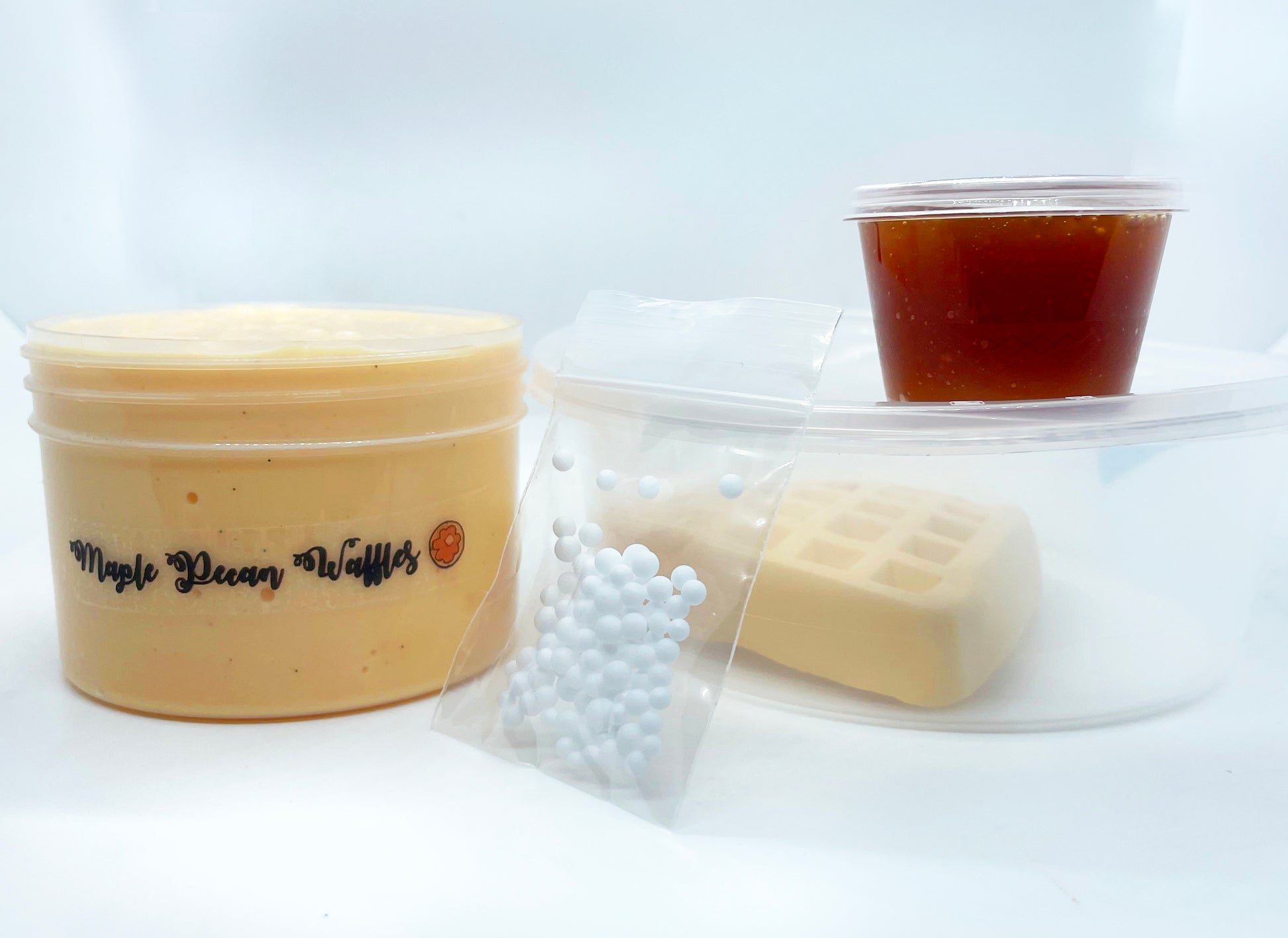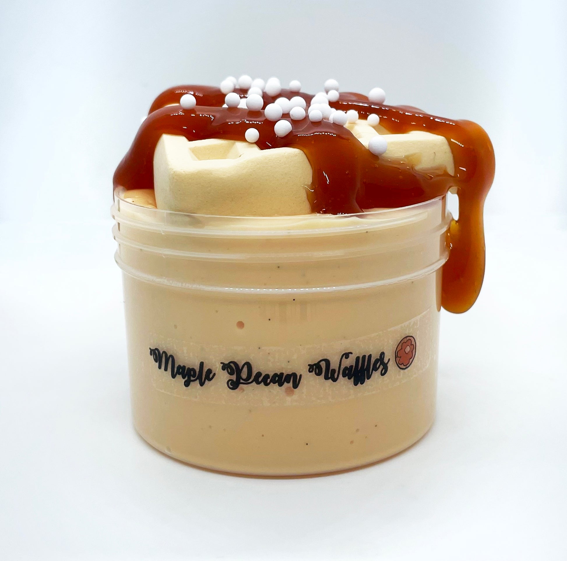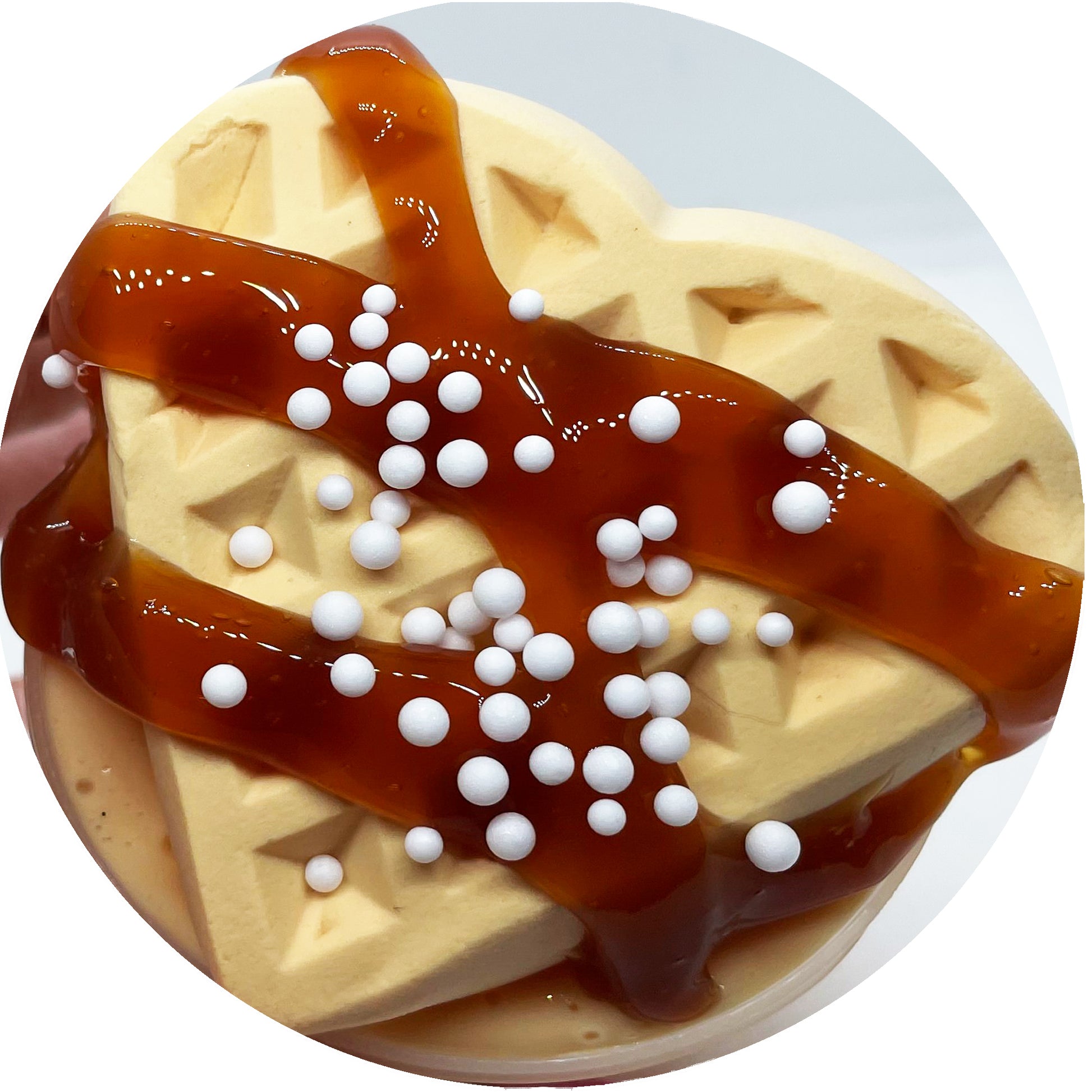 A thick glossy white base that comes with a DIY clay waffle to mix in and maple "syrup" to top off with. Once combined mixes into a thick butter slime. Scented like maple pecan waffles.