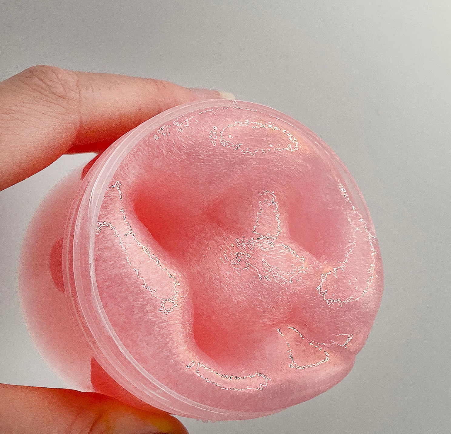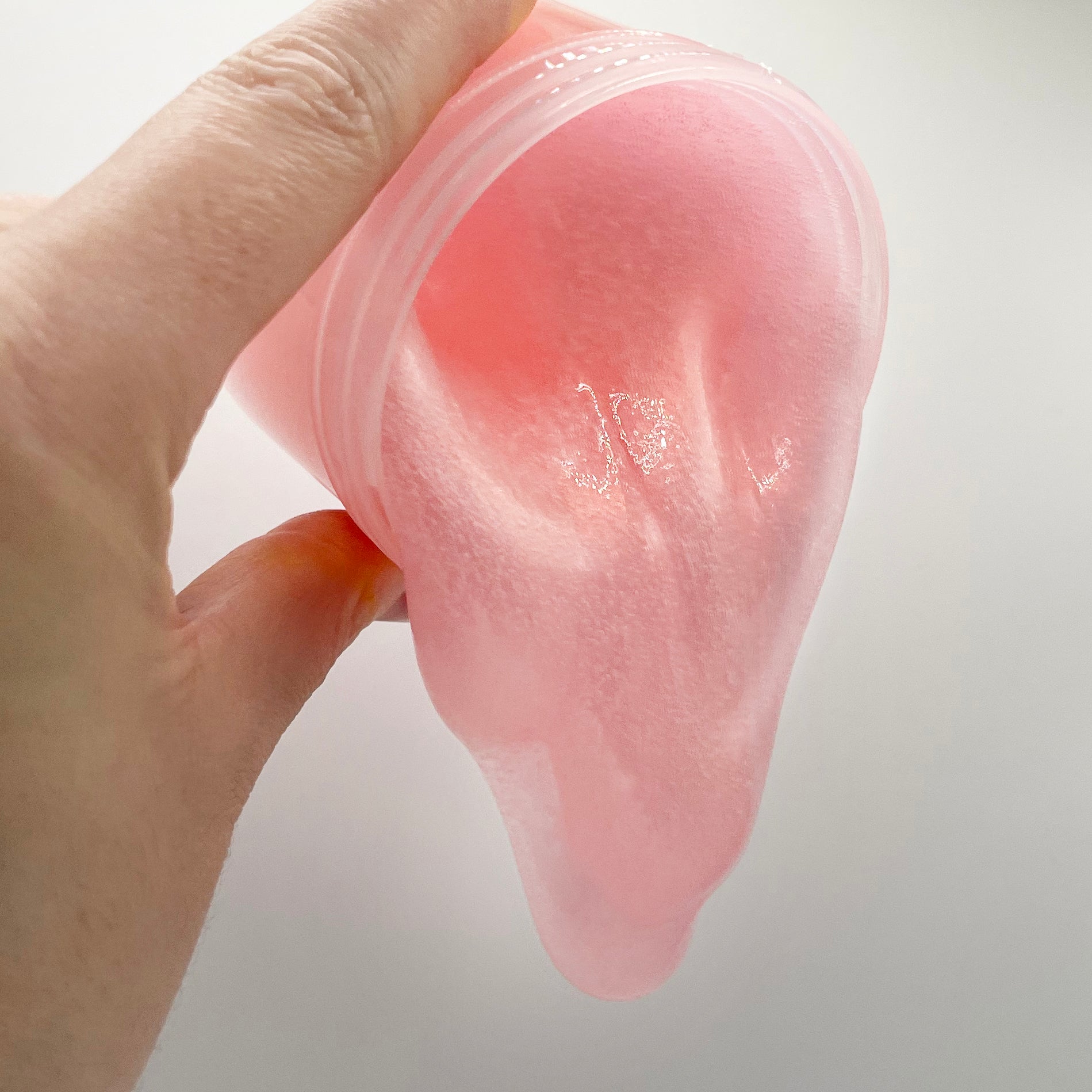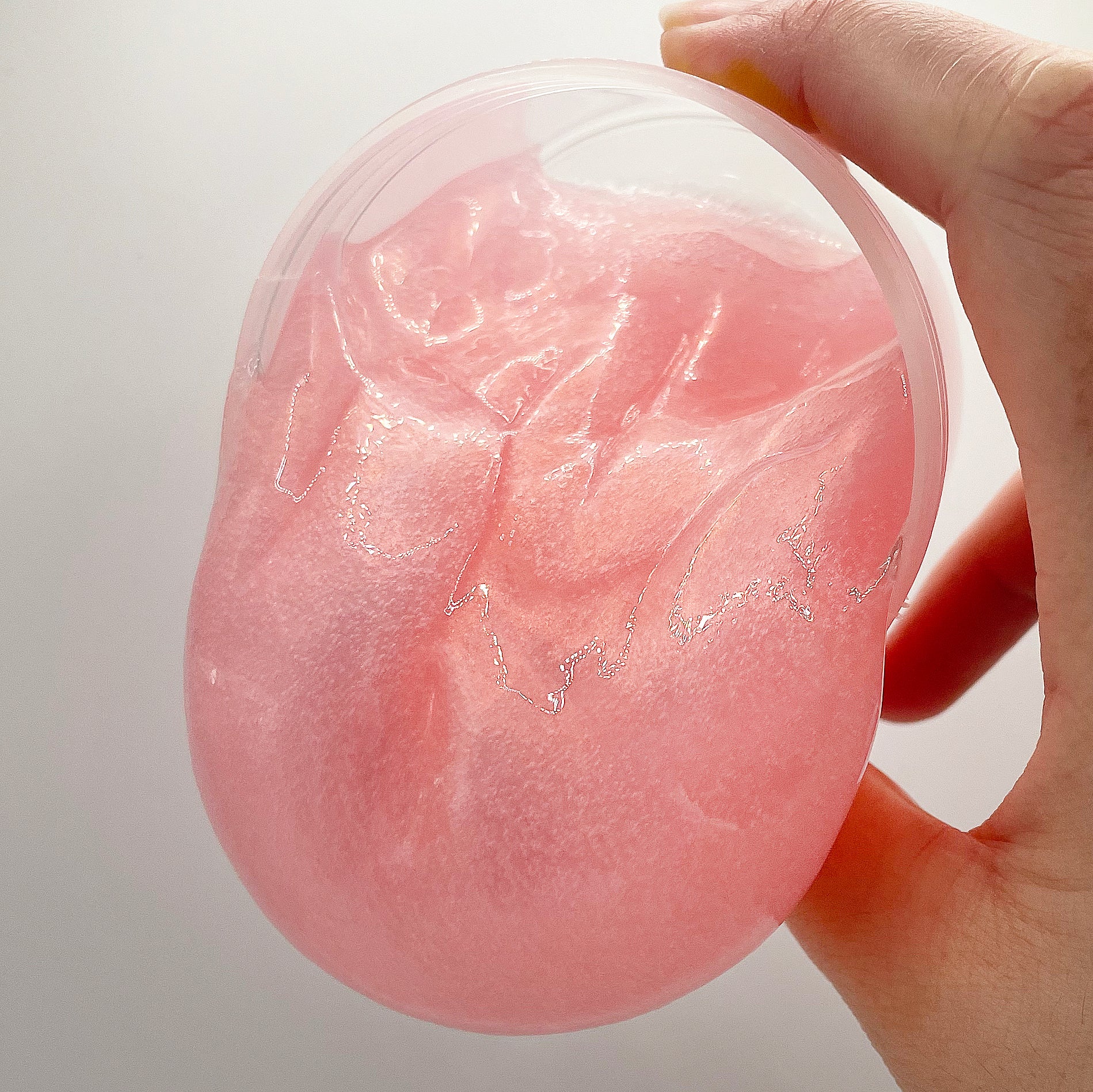 One of our prettiest releases ever created. A pink metallic, shimmery pigment thick slime with a clear glue base. What we imagine to be exactly what a melted down shimmery lipgloss would look like. The smell is soft and lovely and the slime itself is very thick and clicky.