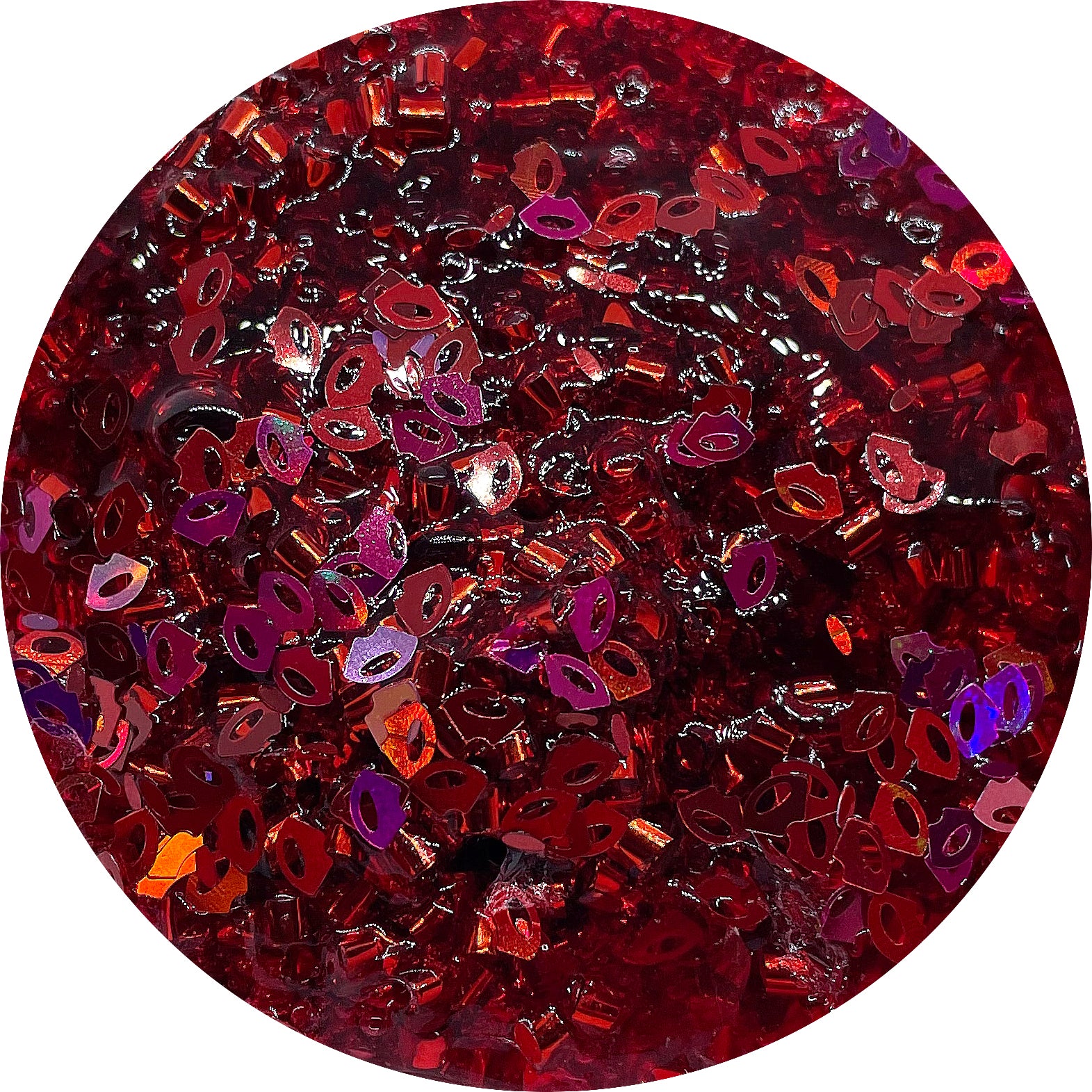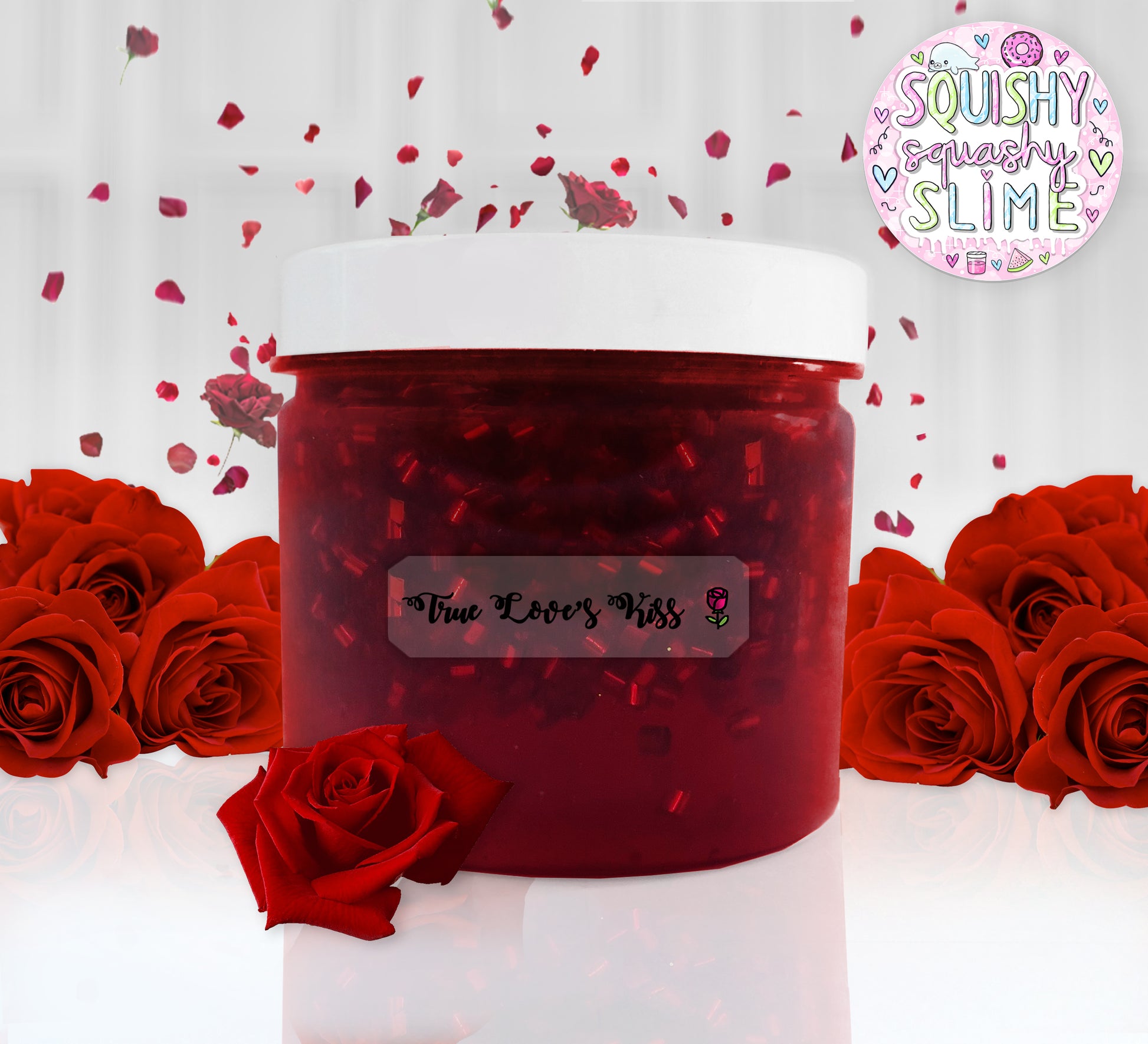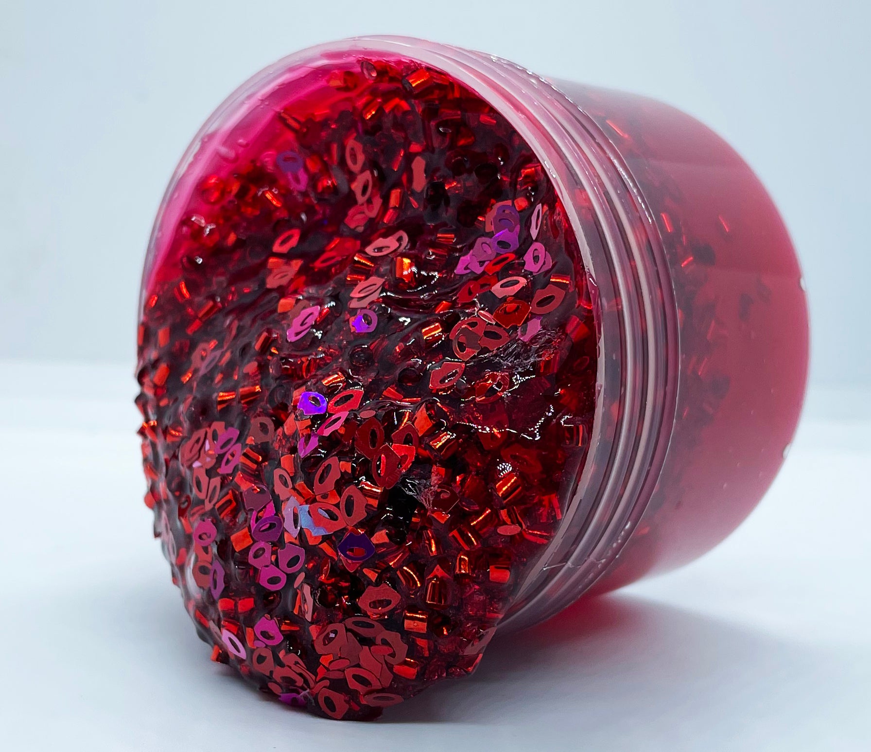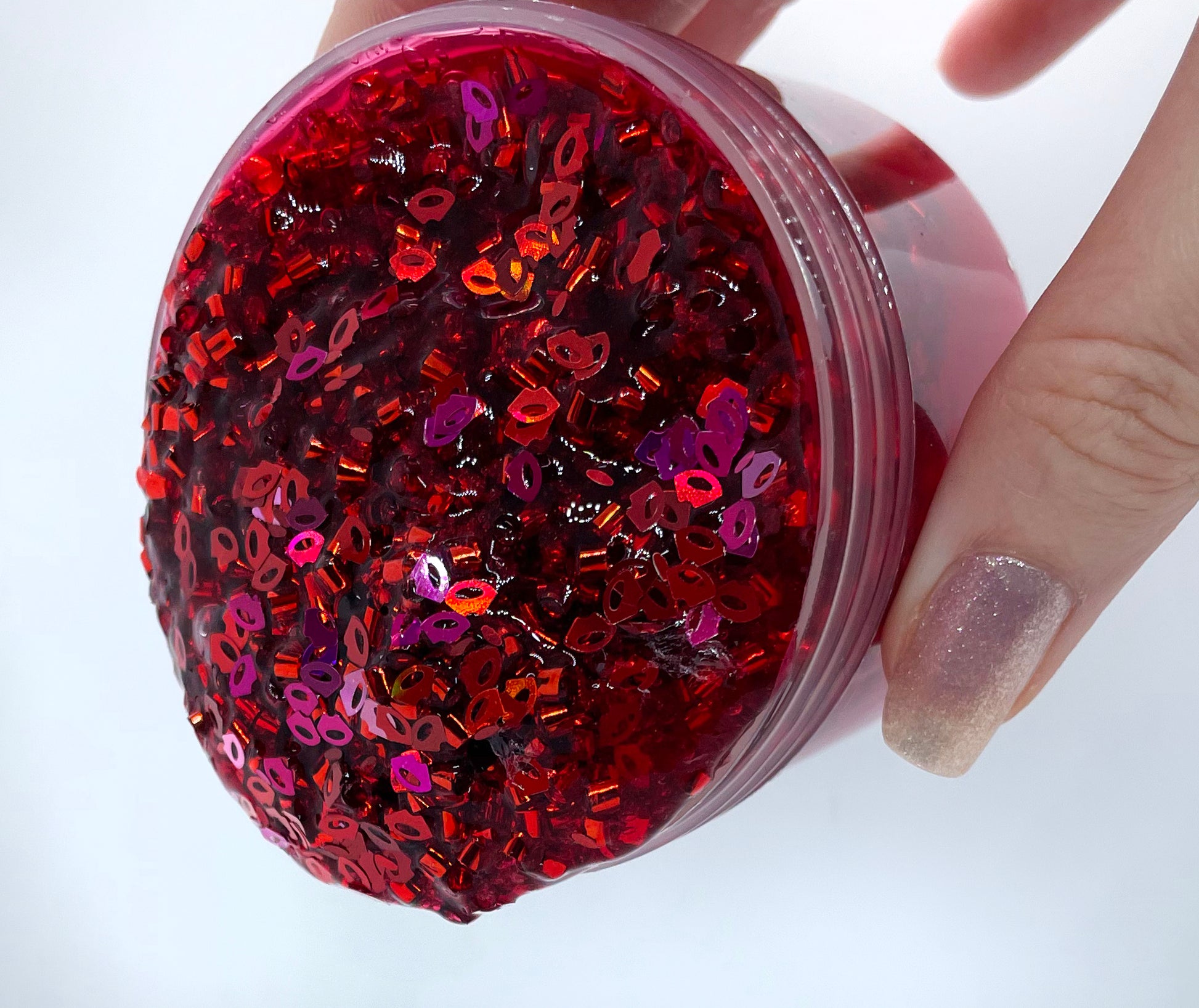 Our long-awaited bingsu edition. A squishy, stretchy bingsu slime topped with kiss confetti and glitters. Scented like roses.